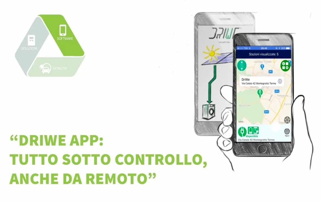 DriWe Charge è sempre connessa al tuo smartphone grazie all’ Applicazione, così da poter essere localizzata nel proprio percorso, prenotata da remoto e pagata – oltre che con tessera – attraverso carta di credito oppure coupon.